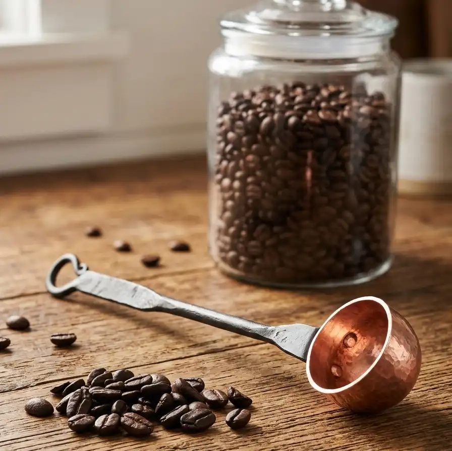 This unique hand-forged coffee scoop offers a rustic, artisan touch to your daily coffee ritual. Crafted from durable, high-carbon steel, each scoop is individually hammered and shaped, ensuring no two pieces are exactly alike.